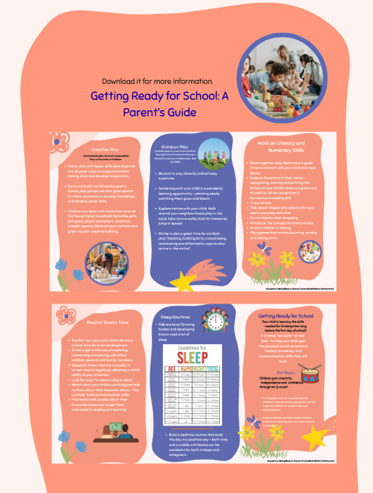 Entering Kindergarten is an exciting and emotional time for both parent and child. It is also a critical step in the child's education. When children reach Kindergarten their teacher will help them focus on the development of early literacy and numeracy skills, decision-making skills, creativity, communication skills, independence and feelings of self-worth. There will be all kinds of interesting and creative activities; from painting, to story time, counting, cultural expression, physical education and more, children will be engaged in structured learning for the development of themselves as a student and as a person.